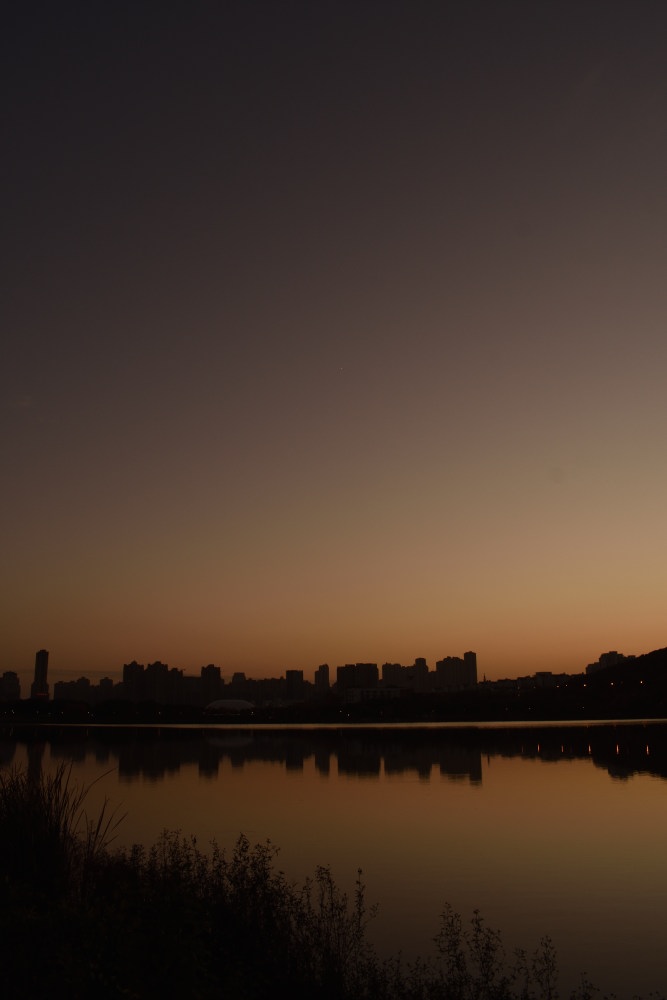 太陽が沈んでだいぶいい感じになってきました。が、まだちょっと明るいです。