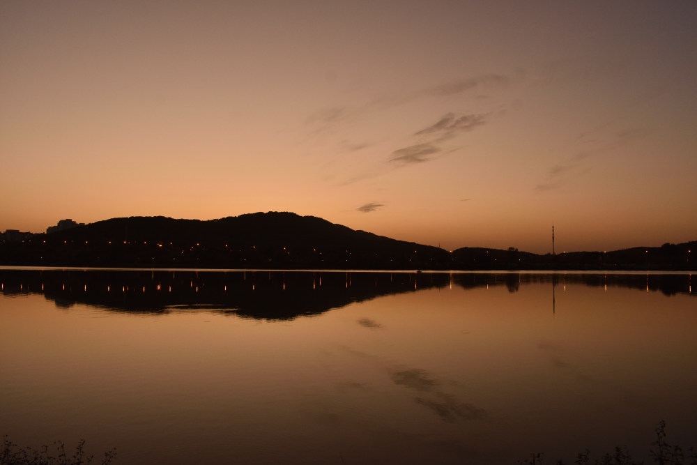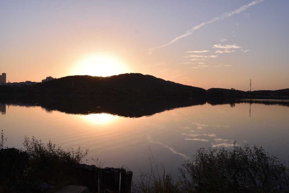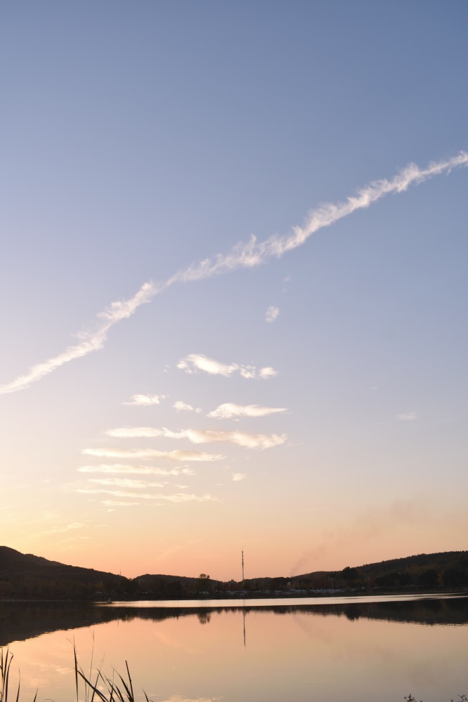 最近天気がすごくいいので、近くの森林公園まで夕日を撮りに行きました。
