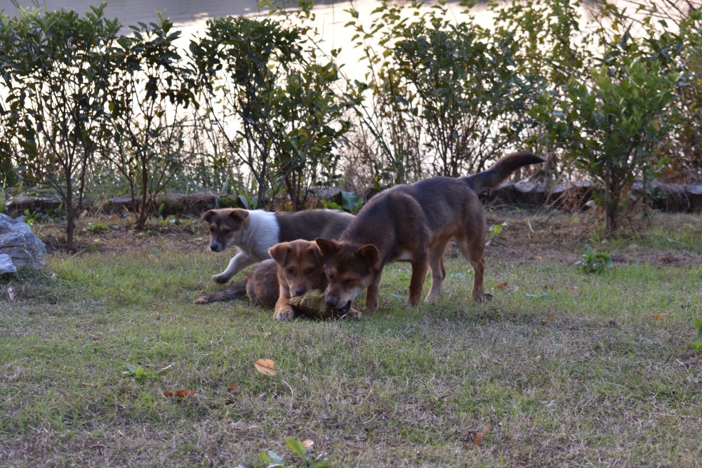 野良イヌたちが戯れてます。