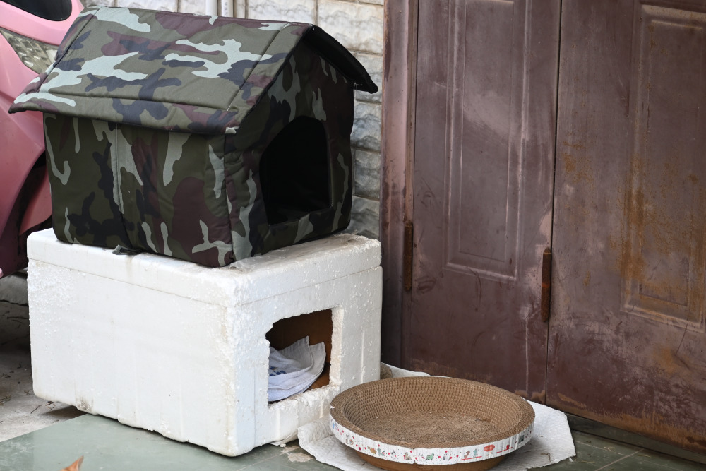 心優しい学生さんたちがお金を出し合って、 ネコの巣を買いました。