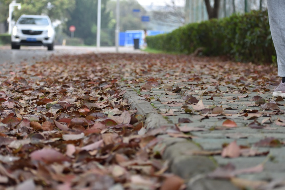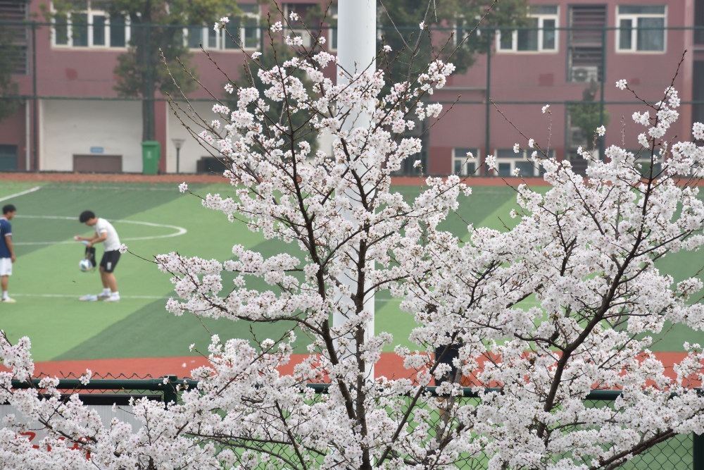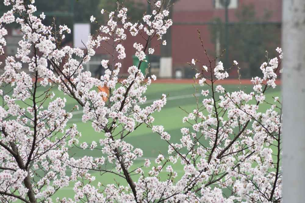 グランドをバックに。そして、最近、春なのによく落ち葉が。。。