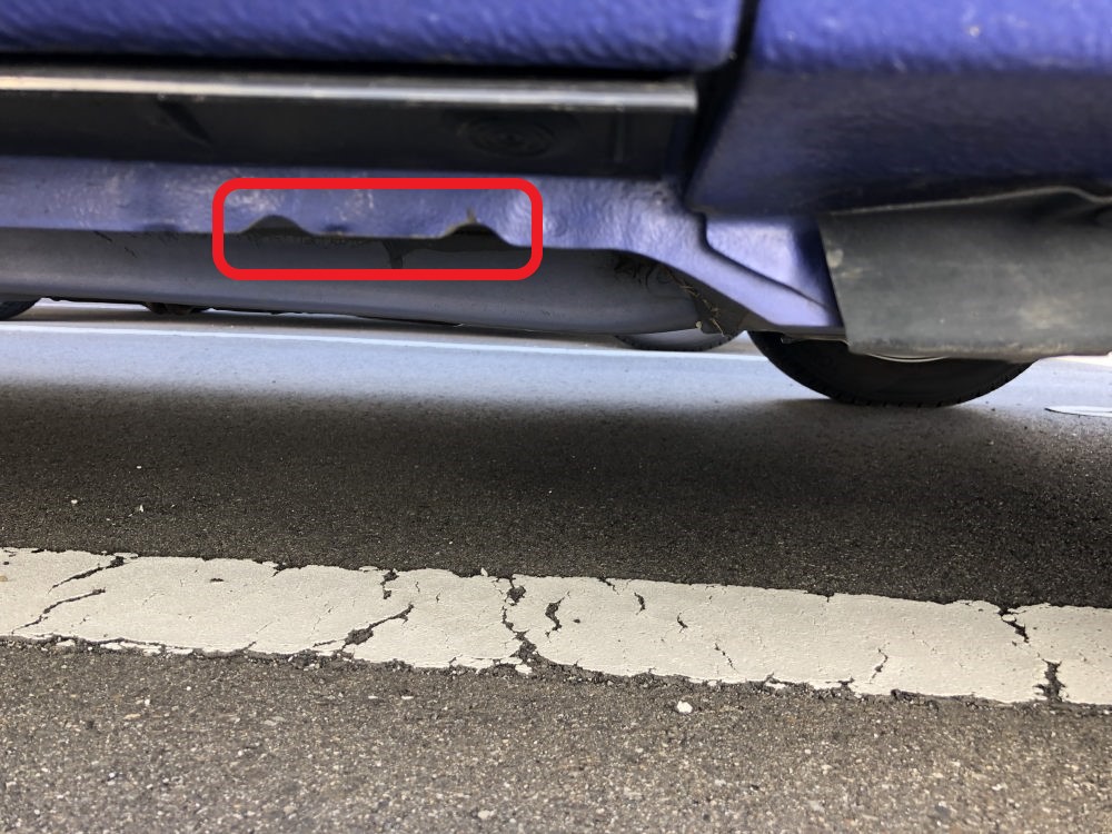 タイヤ付近の下をのぞき込むと、以下のようなしるしがありますので、 そこにジャッキを合わせます。