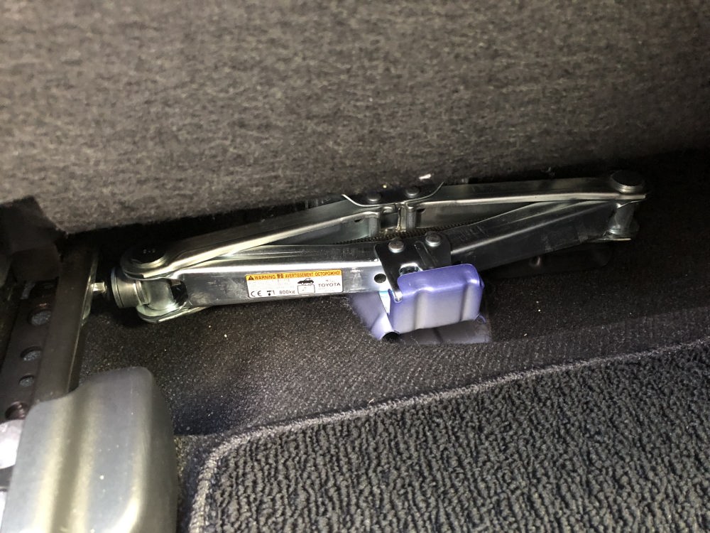 まずはアクアのジャッキアップの場所です。 ディーラーの人がジャッキアップはないと言っていたのですが、 調べてみたらありました。 助手席のしたです。 助手席を最前まで移動すると現れます。